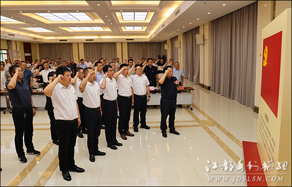 近日,处召开庆祝中国共产党成立104周年大会,全体处领导、中层以上干部及新党员齐聚一堂,通过重温入党誓词、开展形势分析、讲授专题党课等形式,传承红色基因,强化责任担当,为推进江都水利枢纽高质量发展注入强劲动力。 铿锵誓言铸忠魂,新老党员共践初心。“我志愿加入中国共产党,拥护党的纲领......”会议组织新党员进行入党宣誓,在鲜红的党旗下,新党员依次列队,右手握拳,庄严宣誓;在场老党员同样以庄严姿态重温入党时的拳拳初心。会议强调,全体党员要以誓词为行动纲领,将初心使命融入血脉,在水利工程管理、防汛抗旱一线中充分发挥先锋模范作用,让党旗始终在水利一线高高飘扬。 形势研判明方向,思想洗礼汇聚动能。会议通报上半年党建工作、意识形态工作及党风廉政建设形势分析报告,并开展专题党课学习。会议要求,在“十四五”规划收官、高质量发展“五项工程”攻坚的关键阶段,全处上下必须紧扣中心工作,主动对标找差,提纯党性作风,在工程标准化管理上“提标”,在智慧水利建设上“破题”,以更加昂扬的斗志、更加务实的作风和更加清廉的形象争创一流业绩。 实干担当再出发,踔厉奋发共谱新篇。此次大会既是一次思想“再洗礼”,更是一次行动“再动员”。参会党员纷纷表示,将以此次会议为契机,把学习成果转化为干事创业的具体行动,主动对照“五项工程”建设要求,以“功成不必在我”的境界和“功成必定有我”的担当,在推动管理处水利现代化建设中勇挑重担、争作表率、作出贡献。 (文/肖雅茹 图/张斌 编/顾芸) |