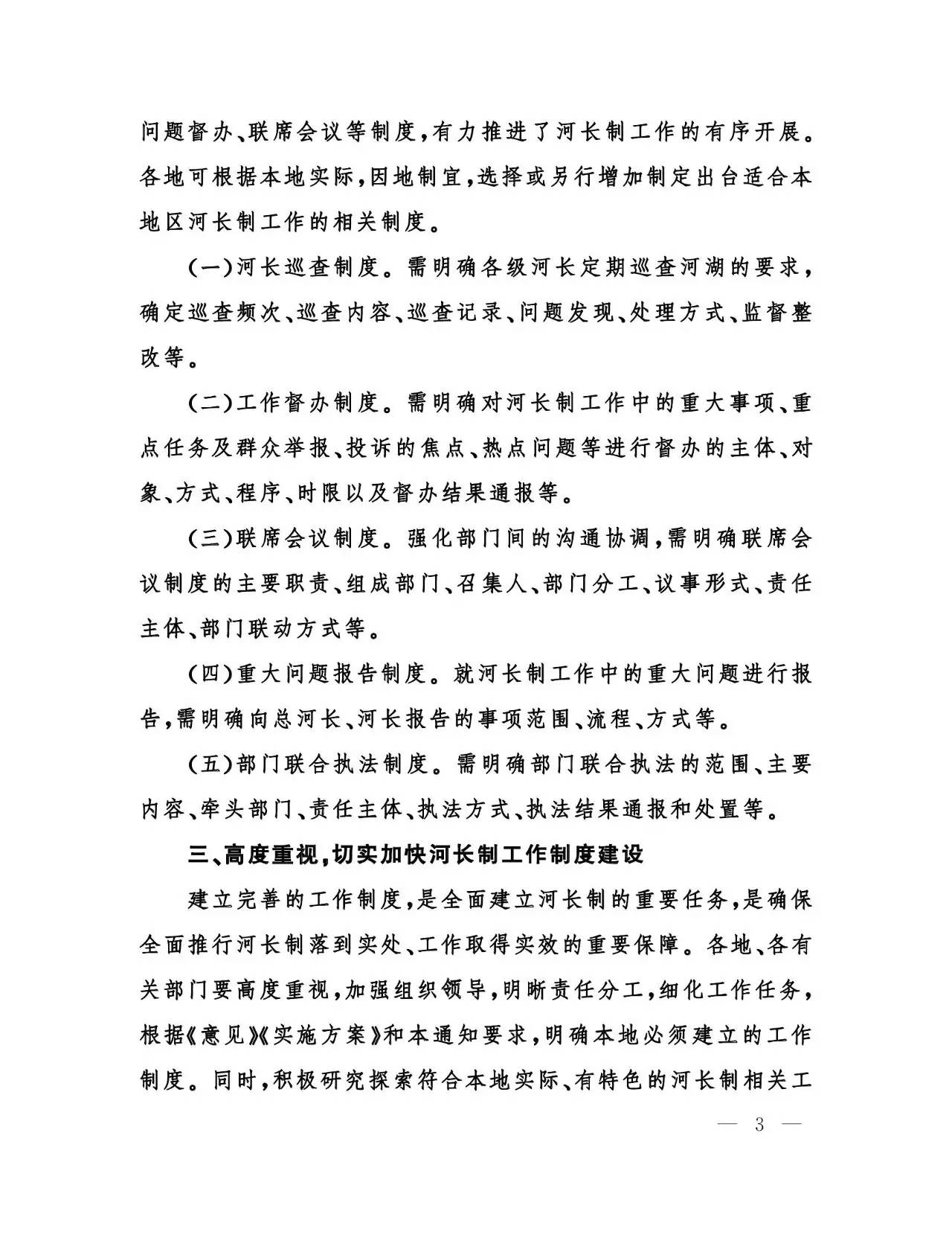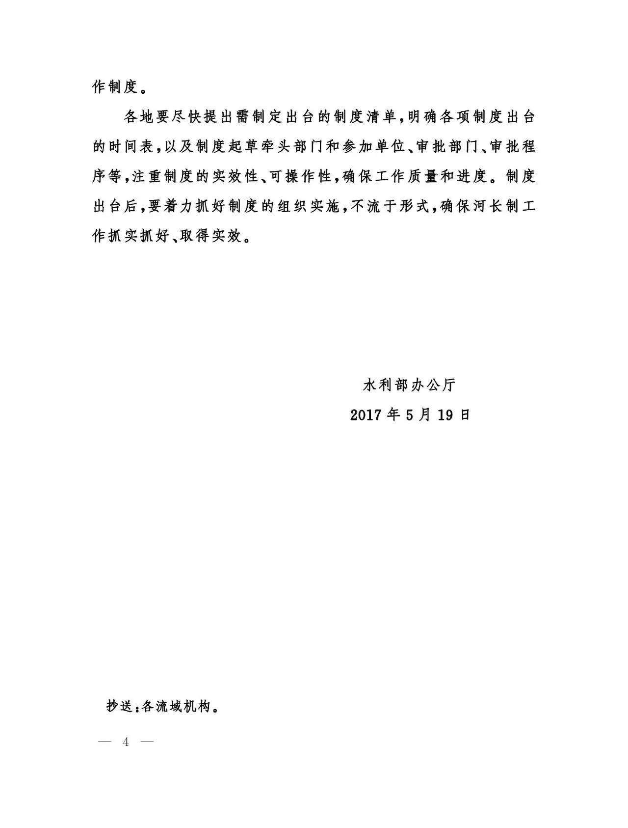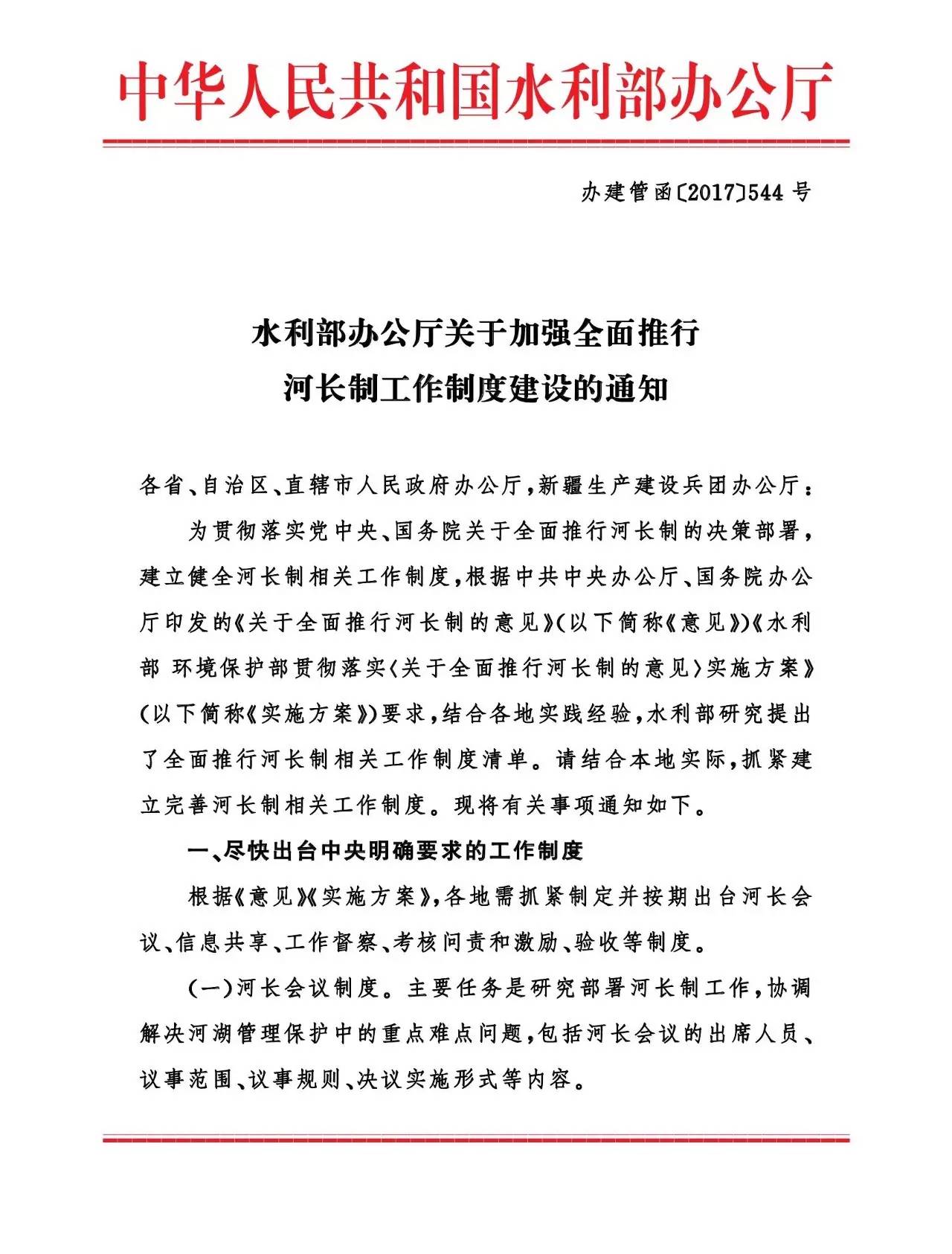 水利部办公厅关于加强全面推行河长制工作制度建设的通知