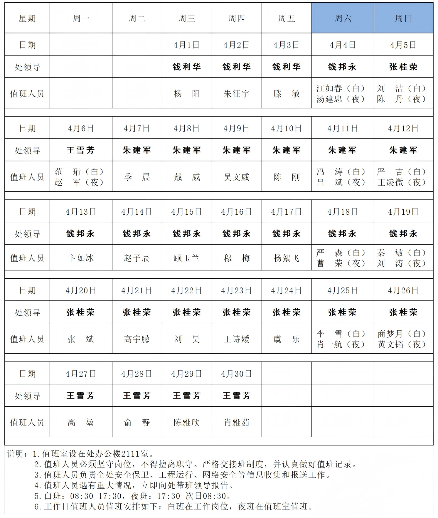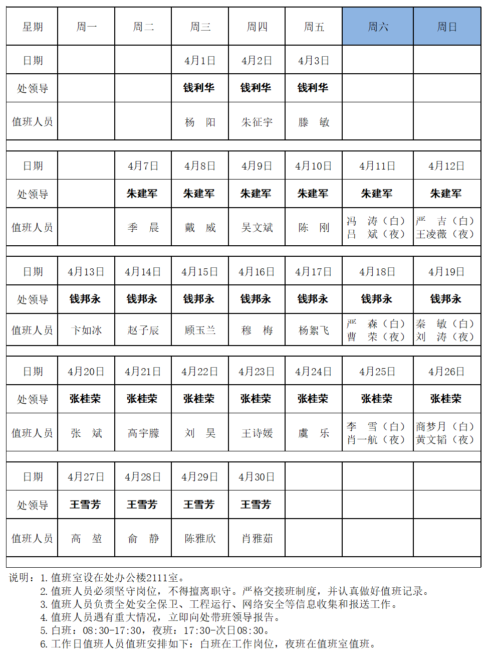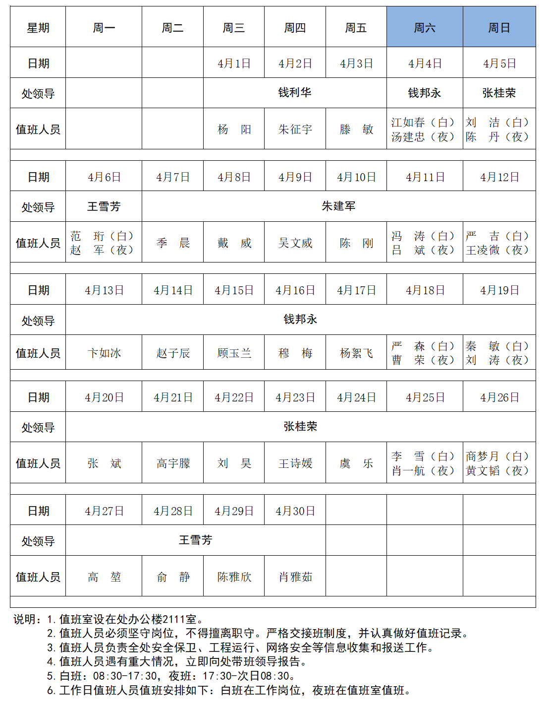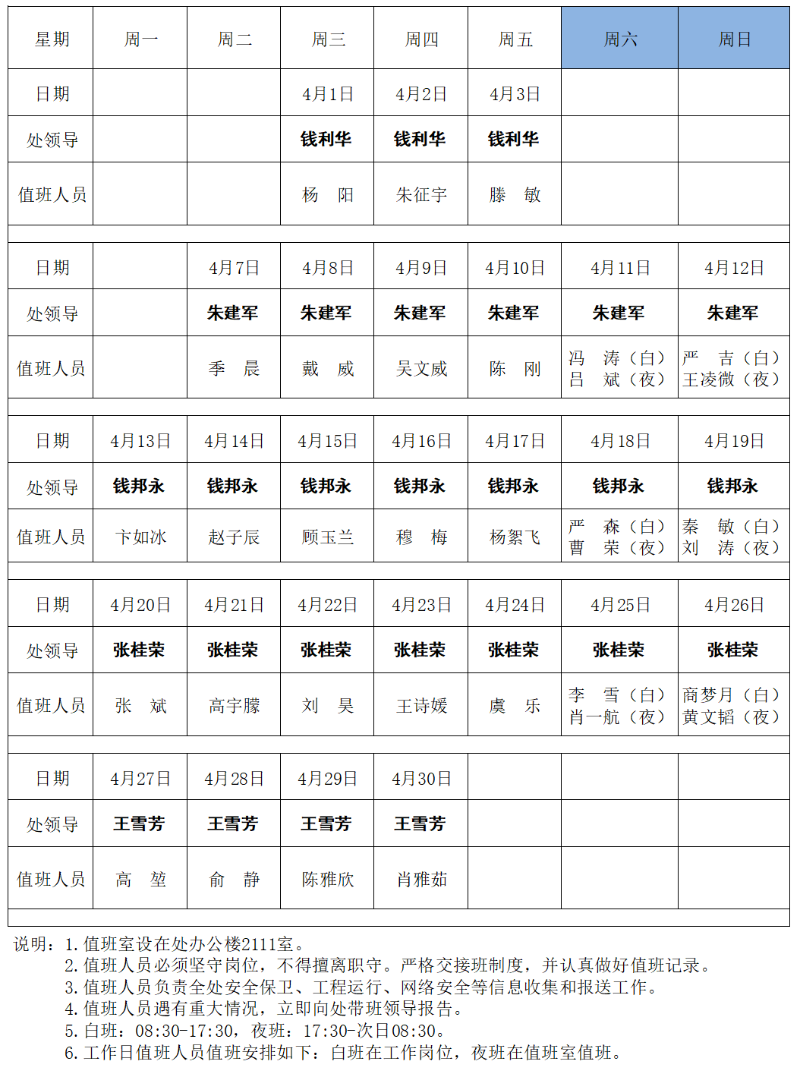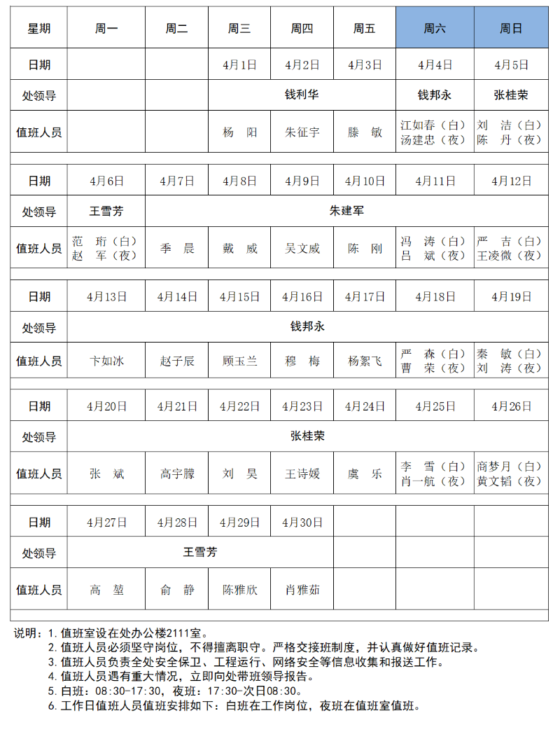 省江都管理处2026年4月值班表