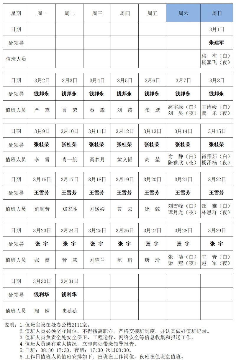 省江都管理处2026年3月值班表